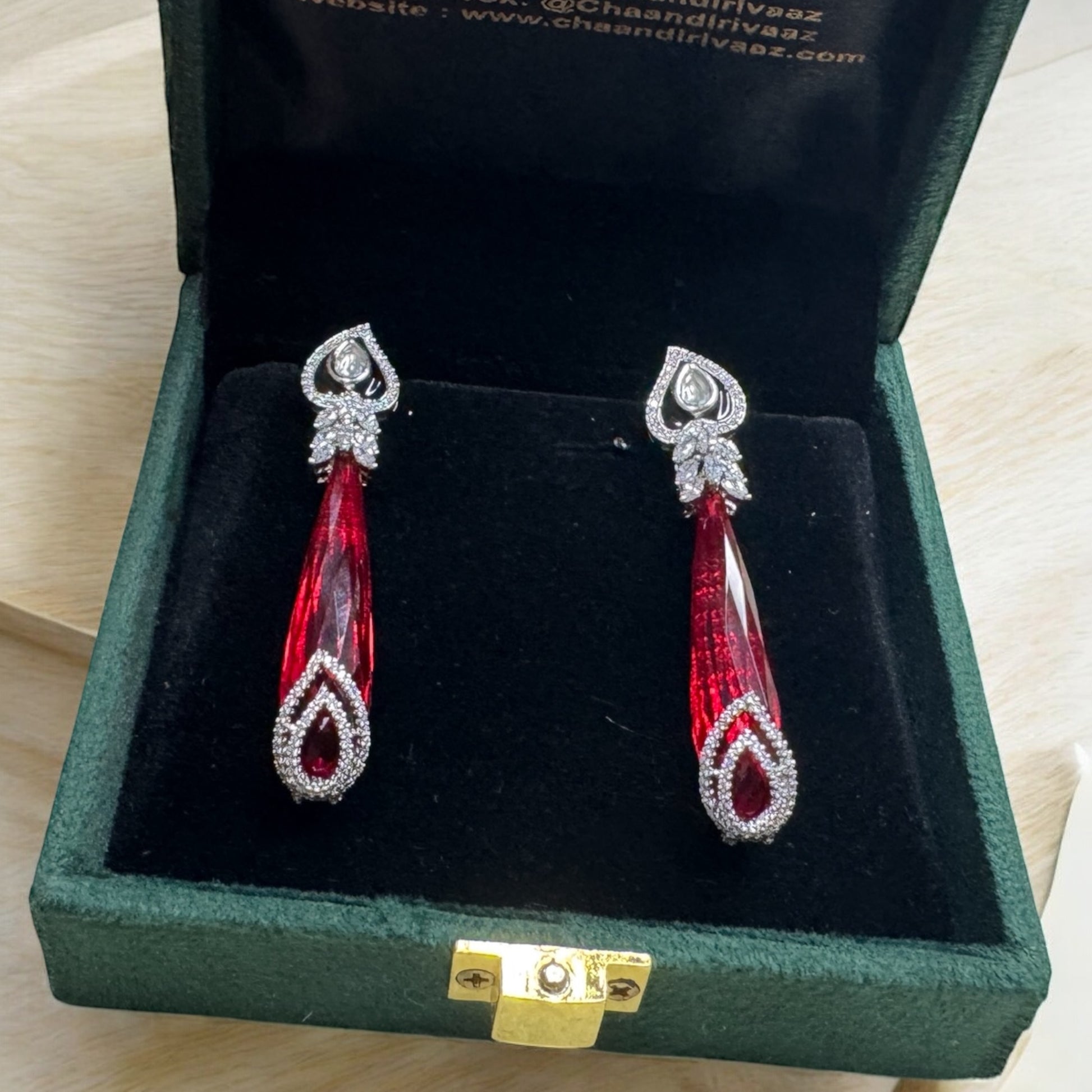 Box Contains – Beautiful pair of Diamond Earrings studded with different coloured stones