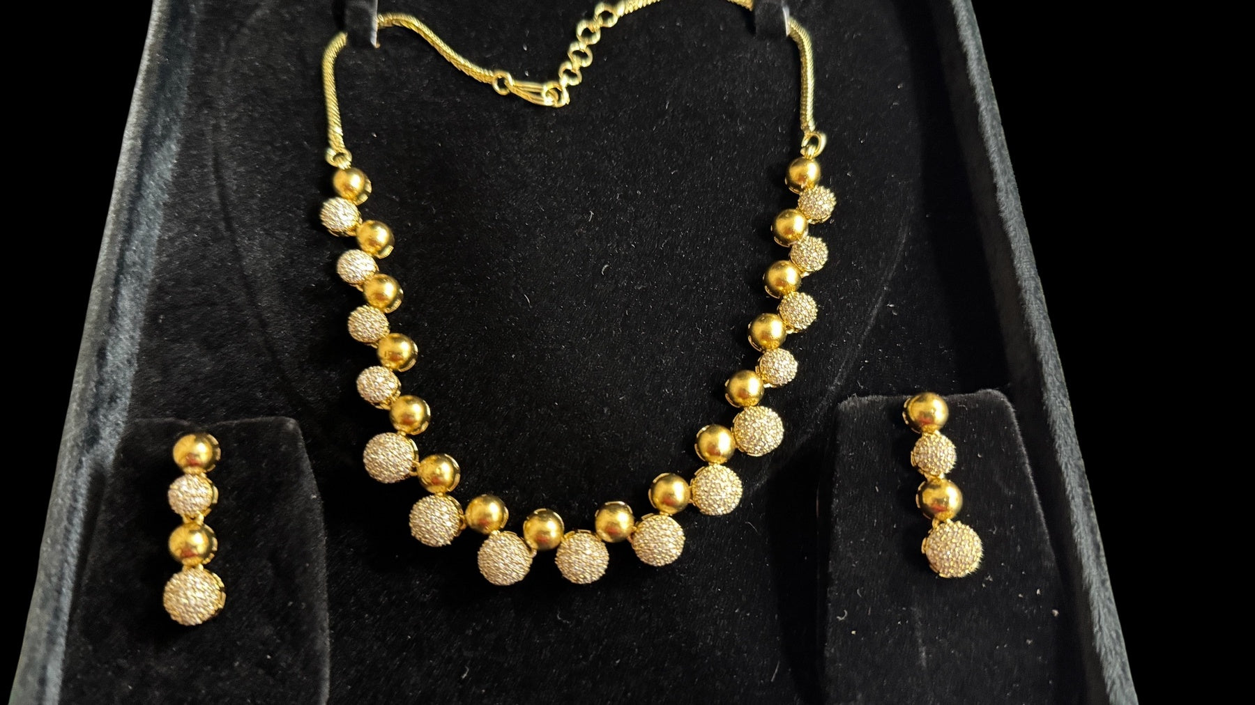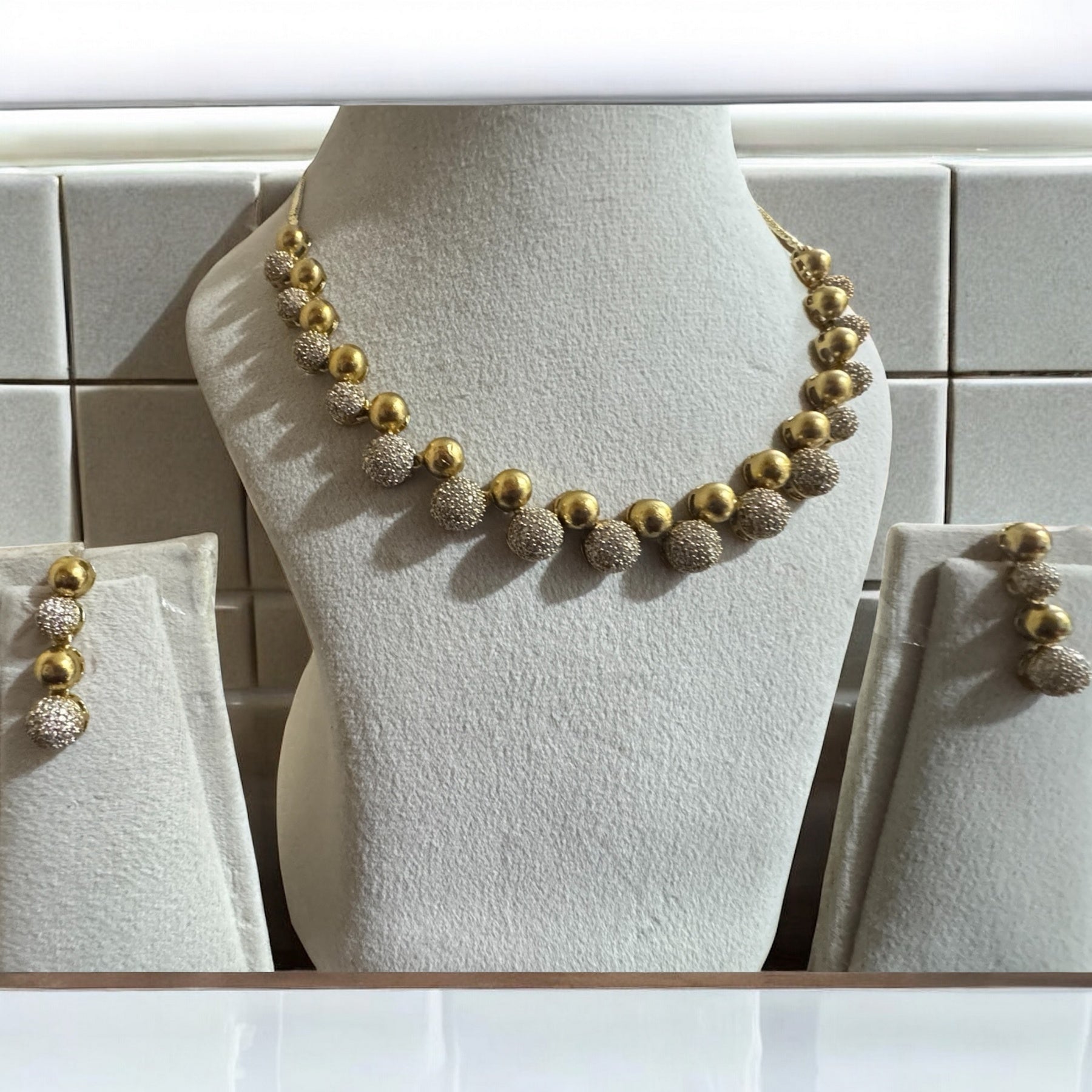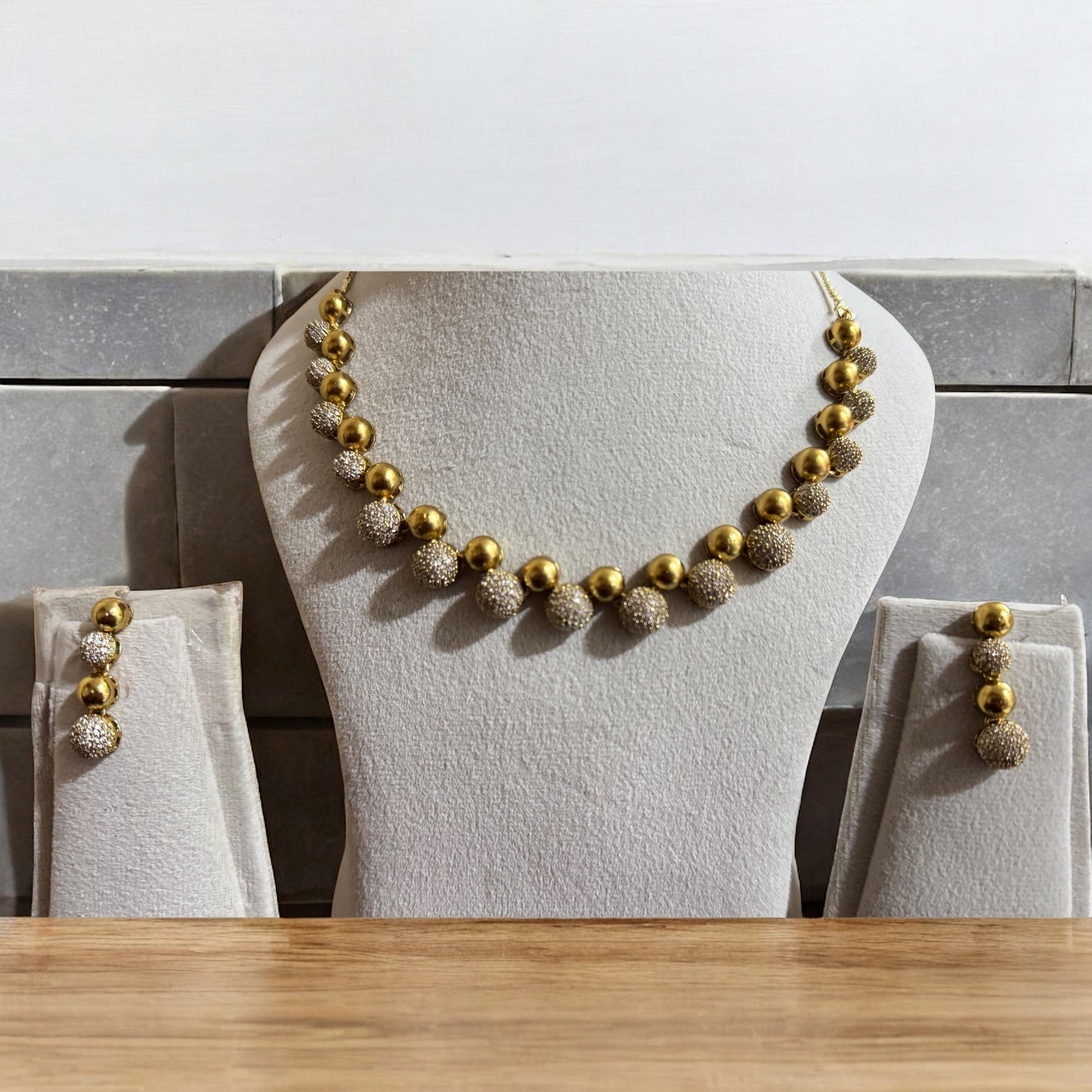 Box Contains - Unbox an experience of elegance with a stunning Ball shaped Neck piece and complementing earrings, all carefully curated for a graceful ensemble.