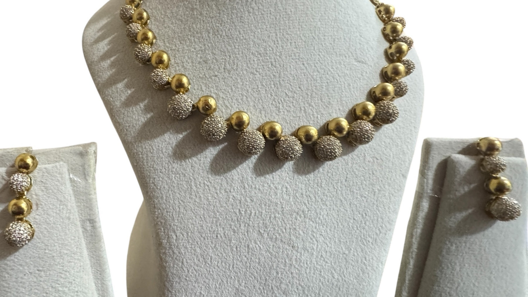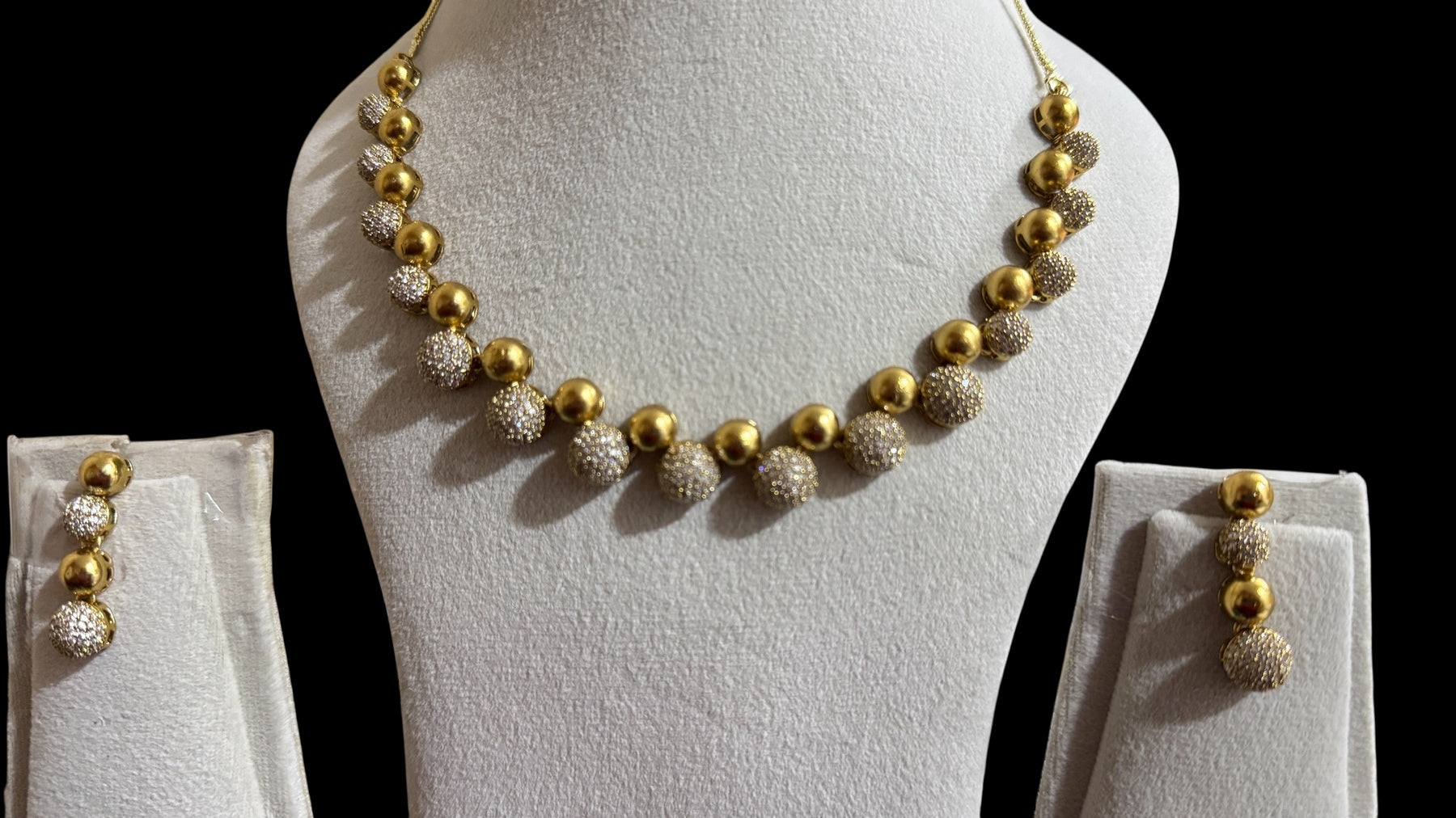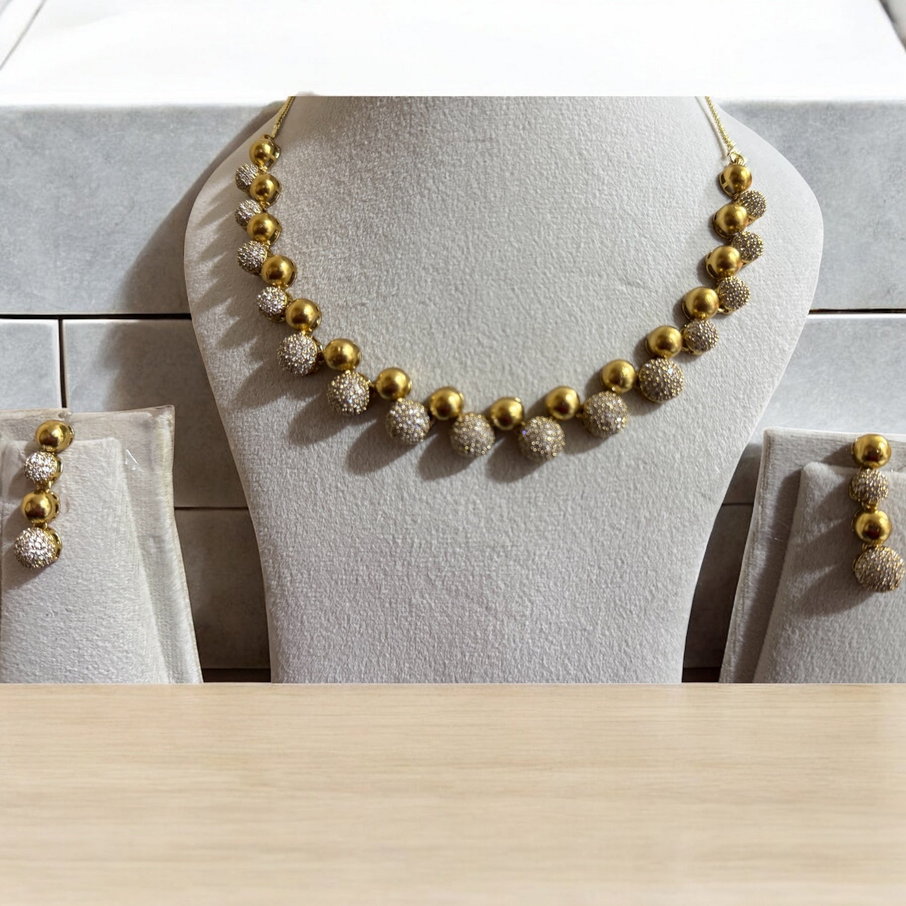Box Contains - Unbox an experience of elegance with a stunning Ball shaped Neck piece and complementing earrings, all carefully curated for a graceful ensemble.