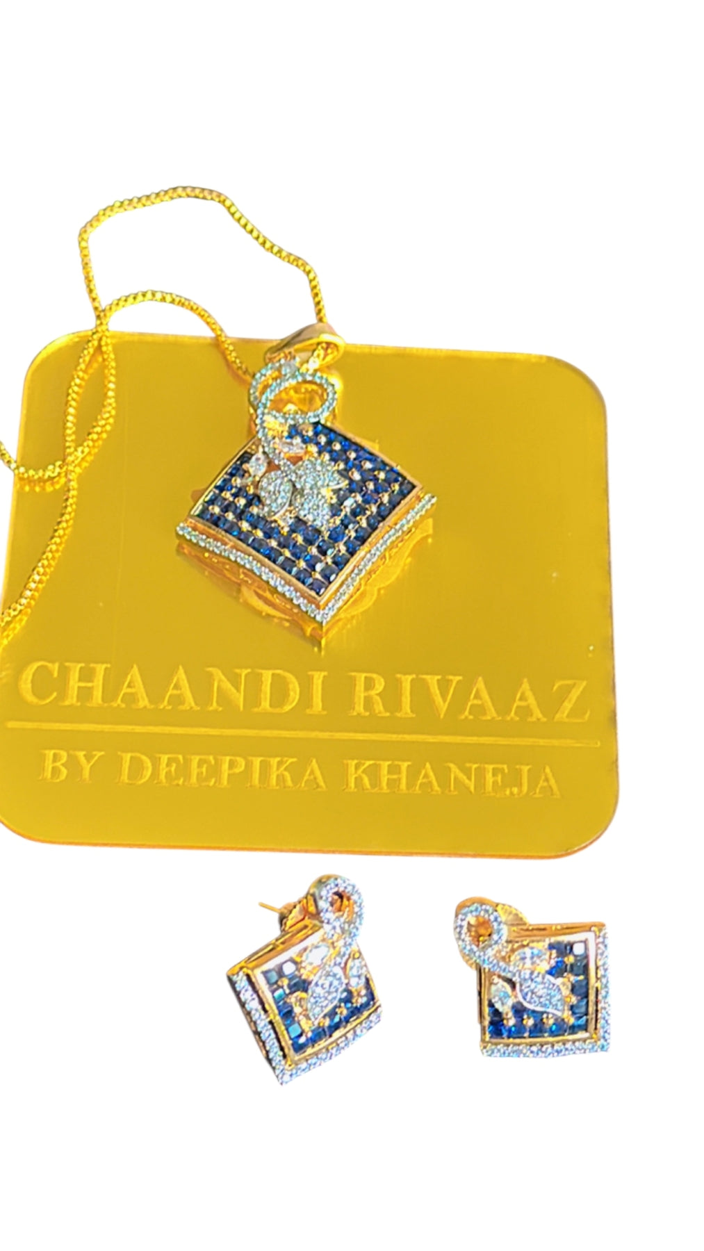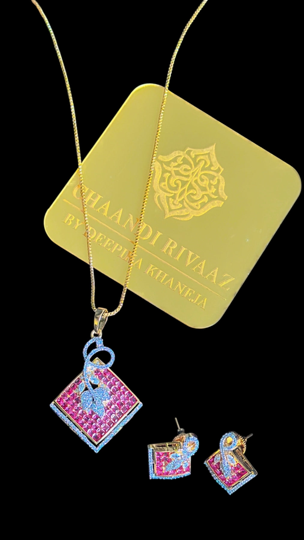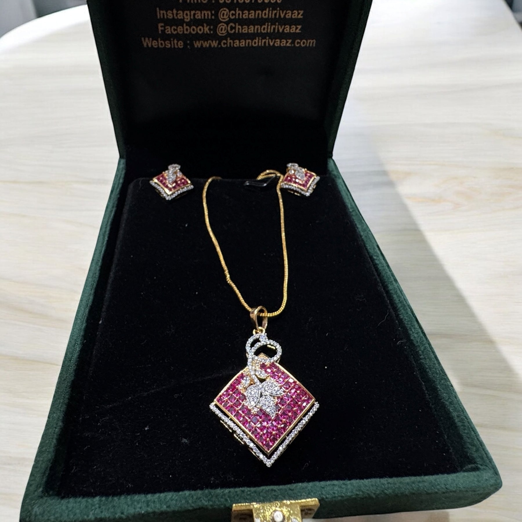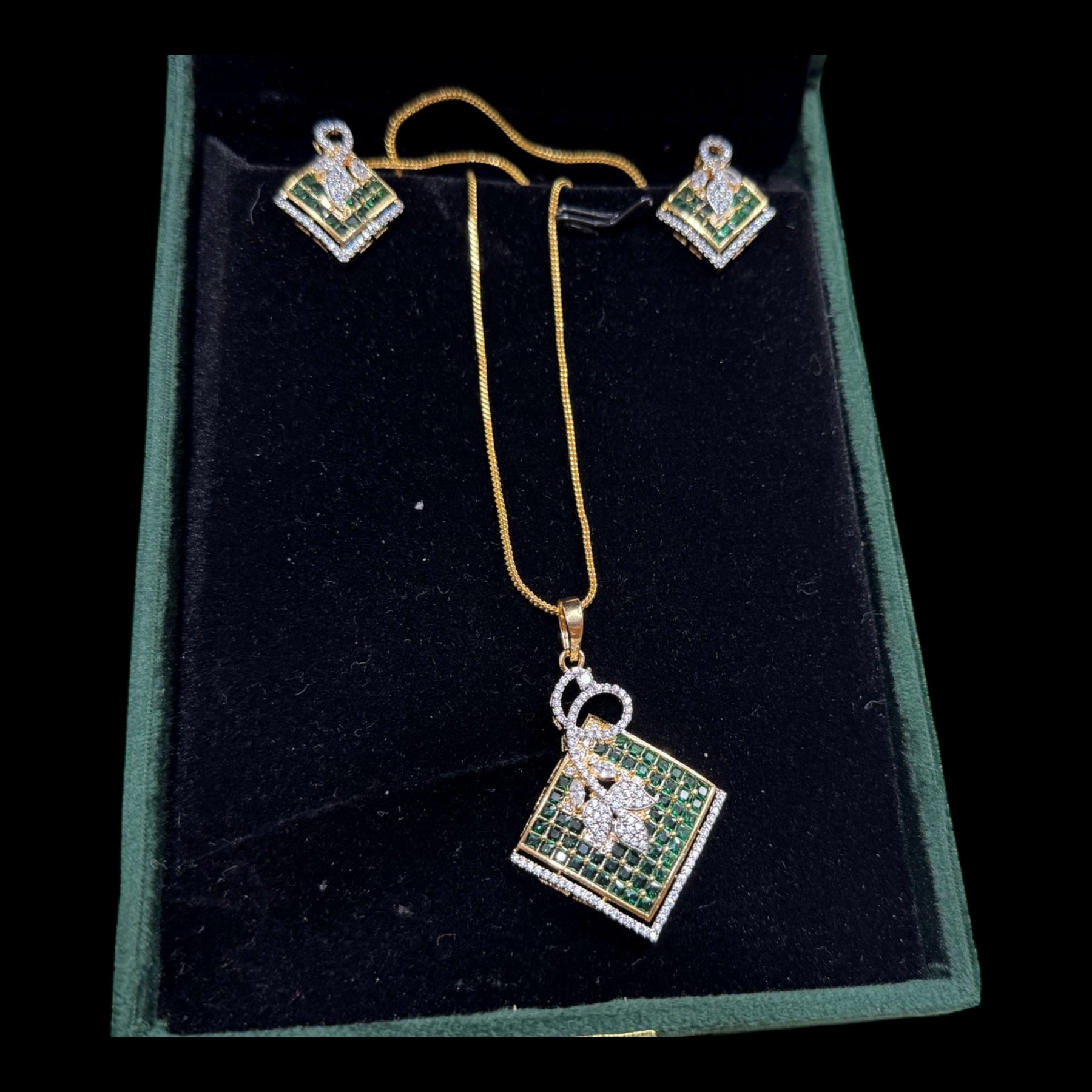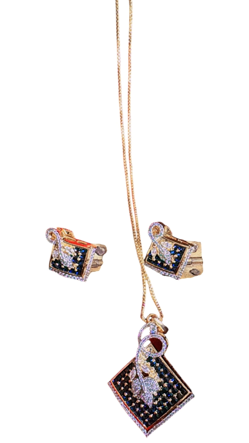 Box Contains –Unveil a breathtaking diamond look alike pendant set attached to different coloured stone studded along with chain and beautiful pair of same coloured earrings.