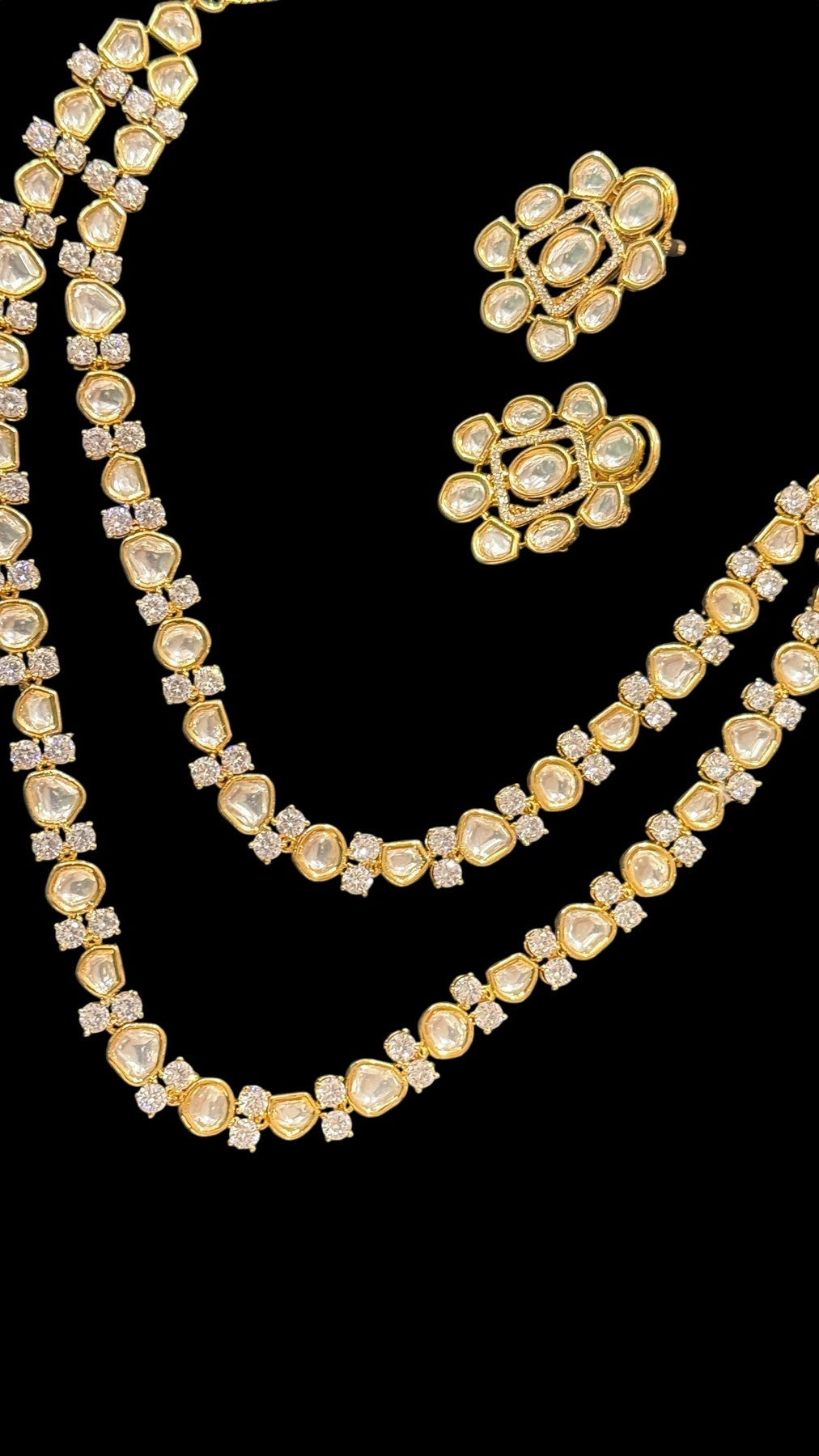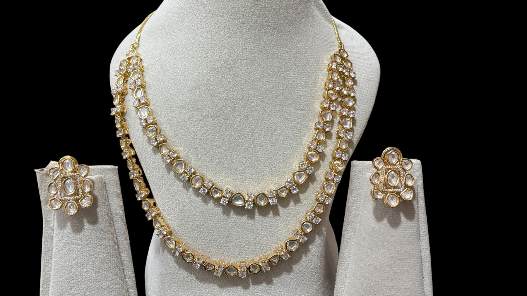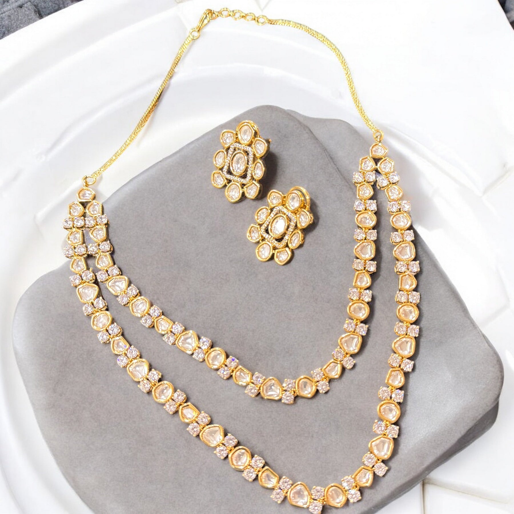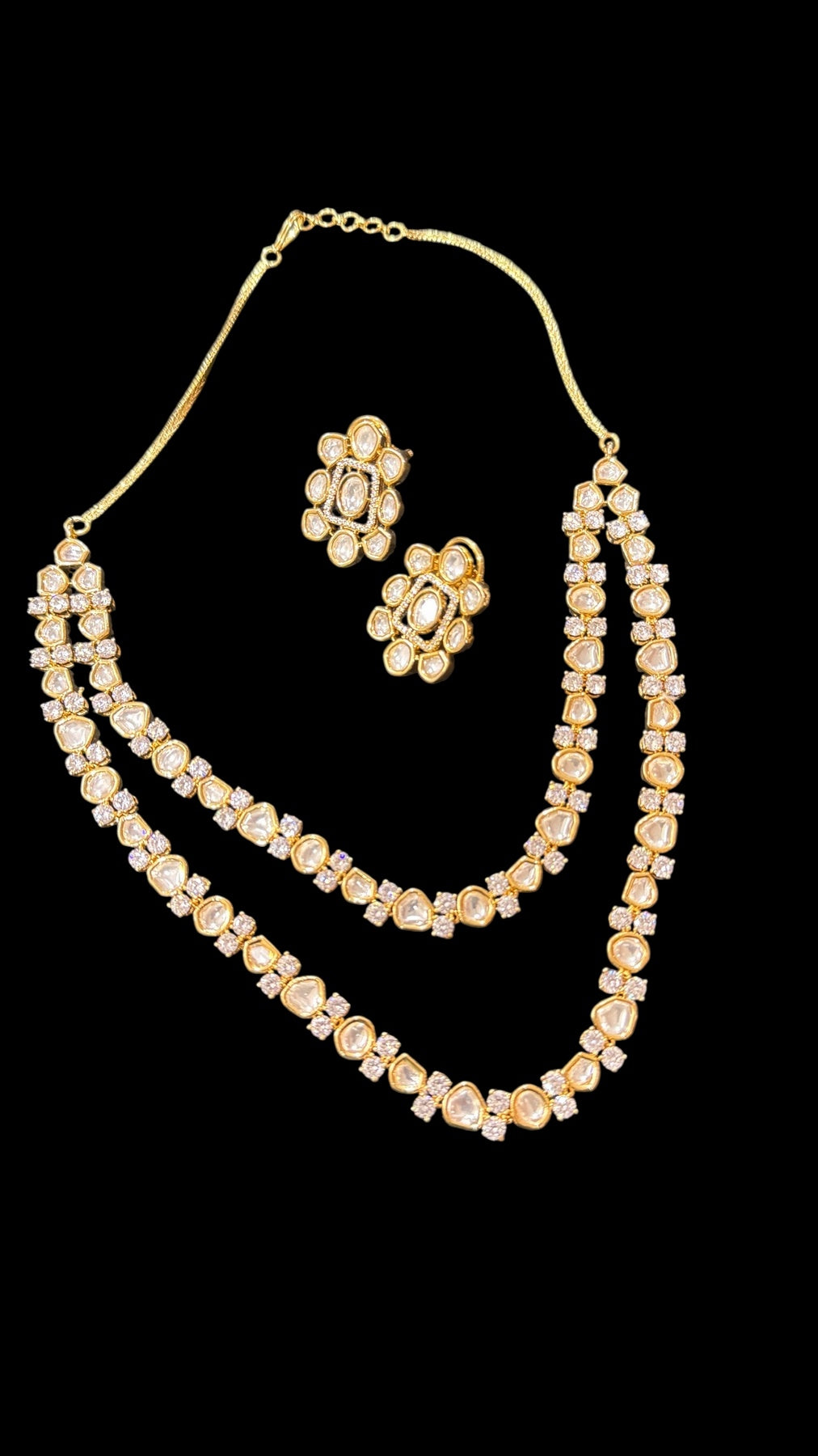 Box Contains – Beautiful Doubled layer Polki stones studded in Neckpiece along with the pair of studded earrings
