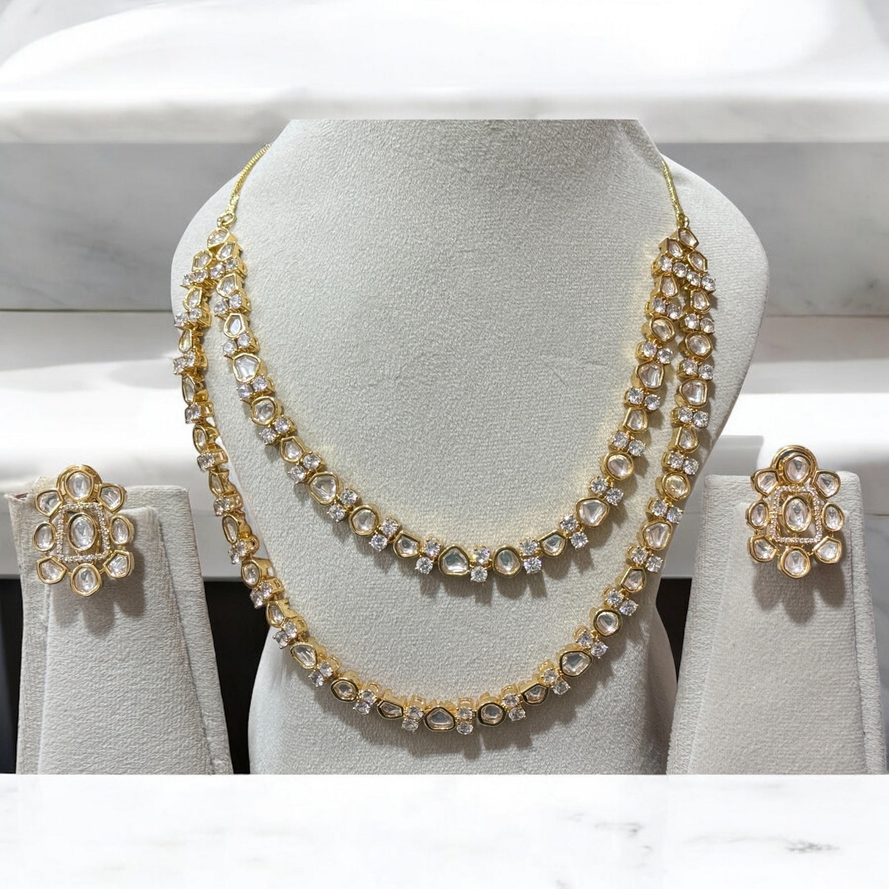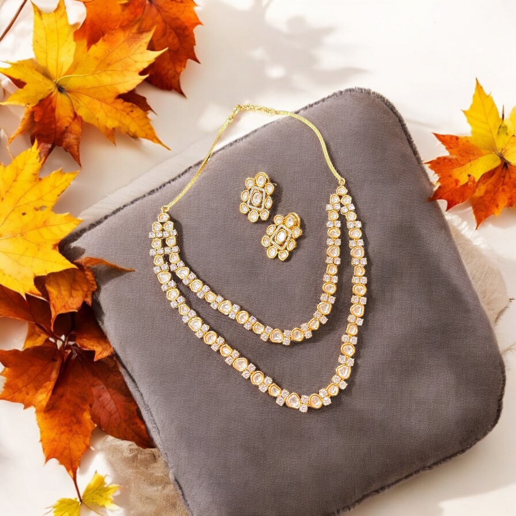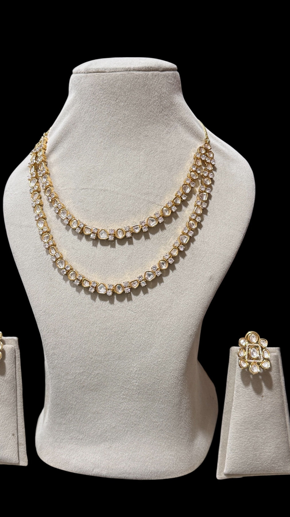Box Contains – Beautiful Doubled layer Polki stones studded in Neckpiece along with the pair of studded earrings