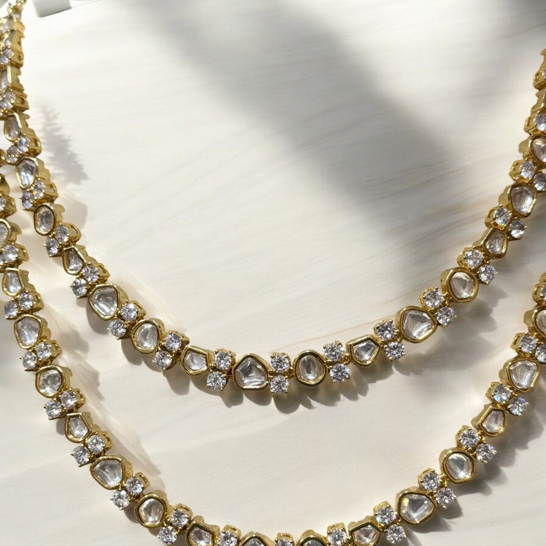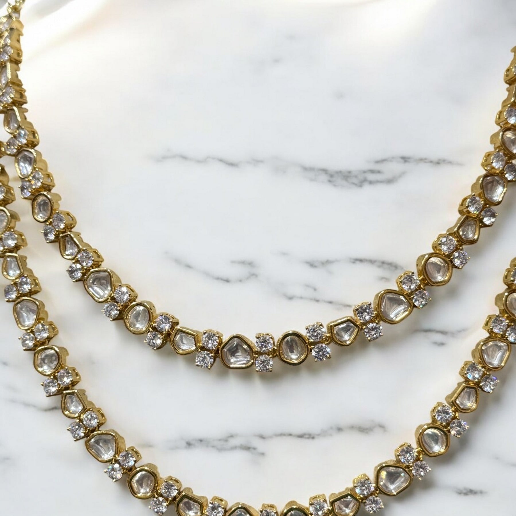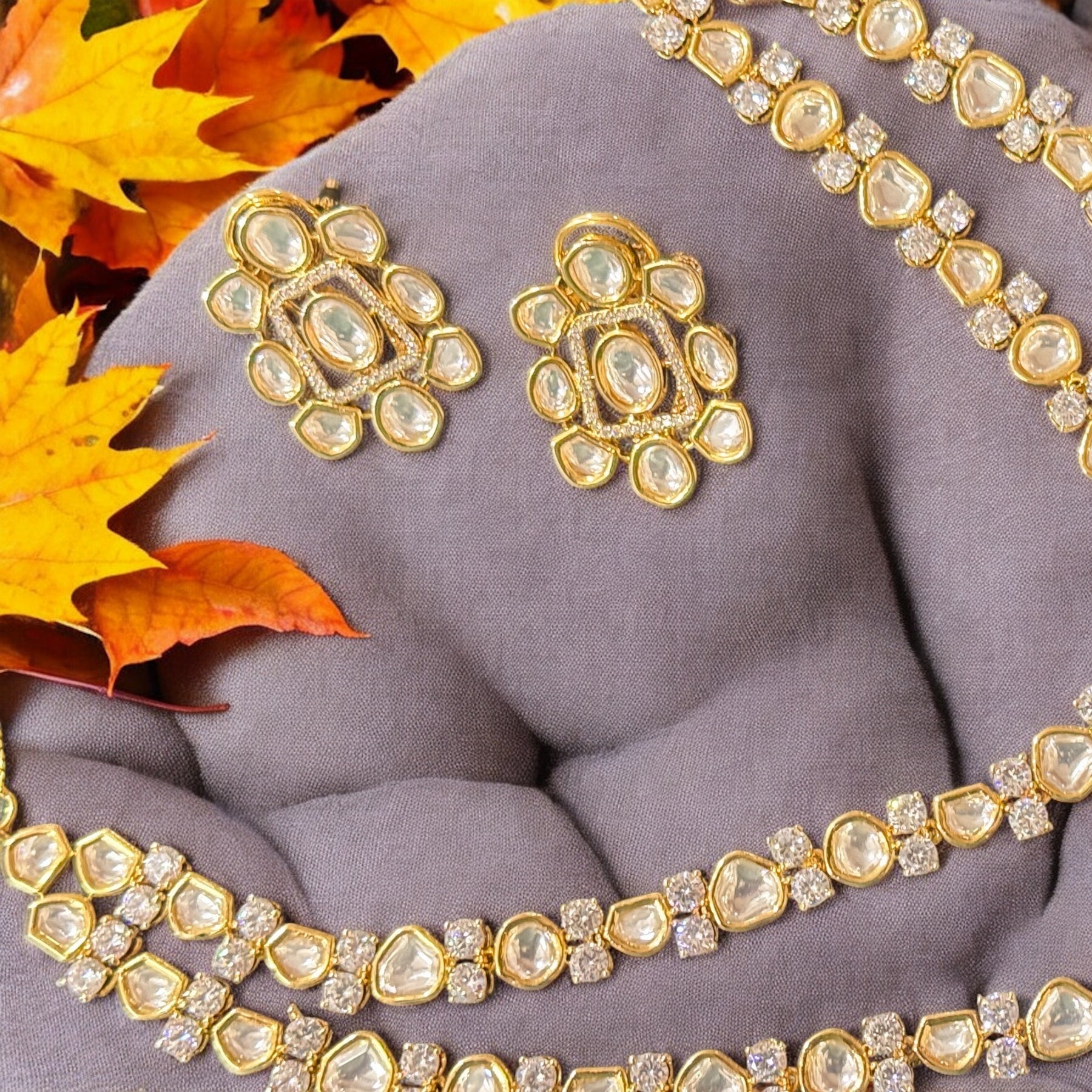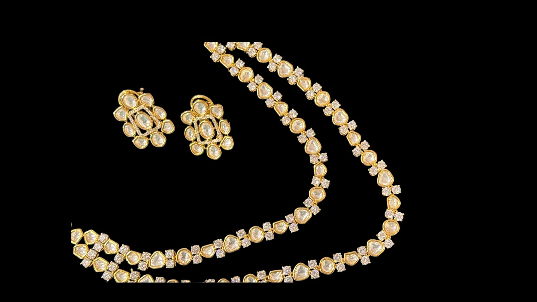 Box Contains – Beautiful Doubled layer Polki stones studded in Neckpiece along with the pair of studded earrings