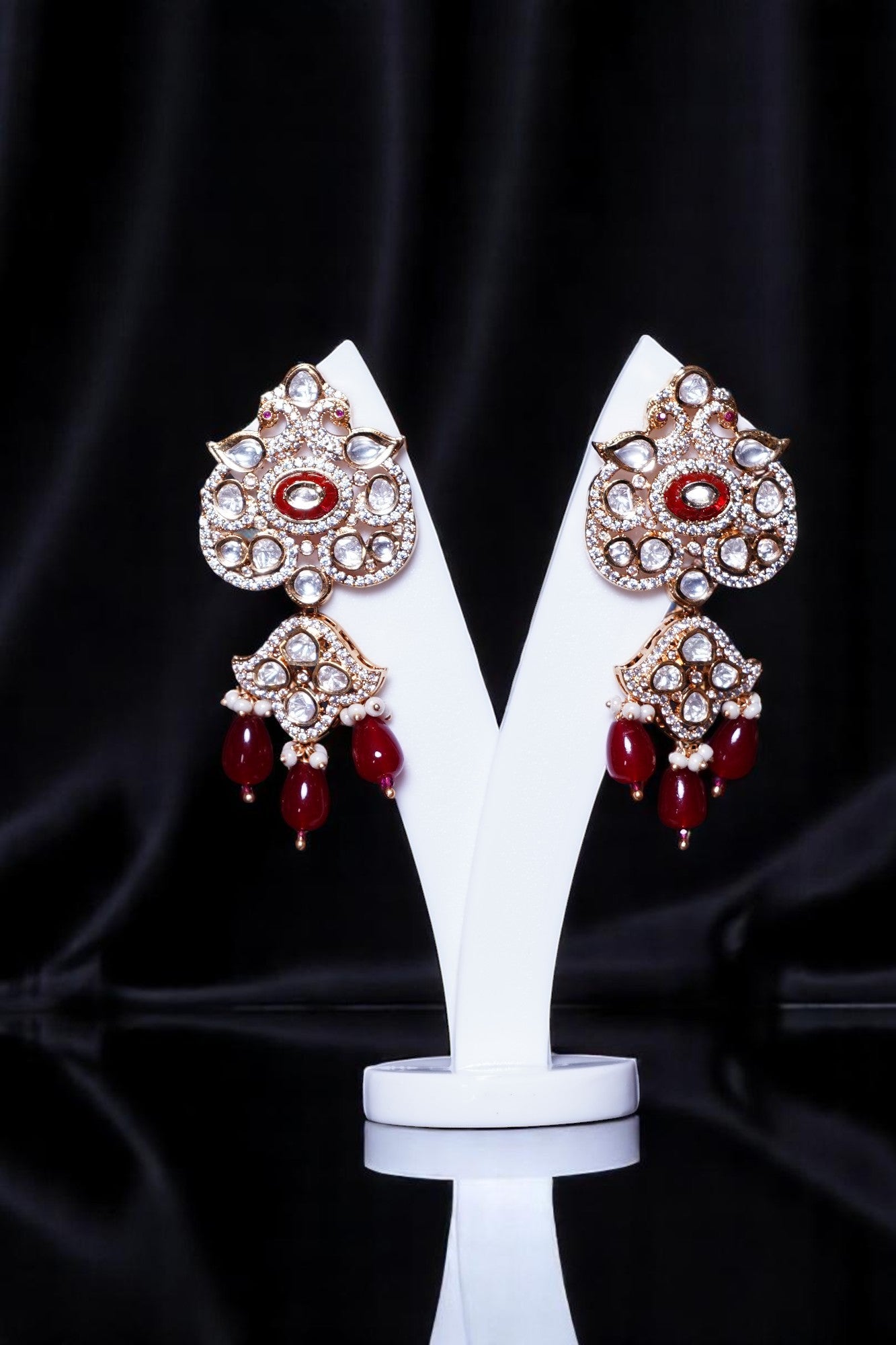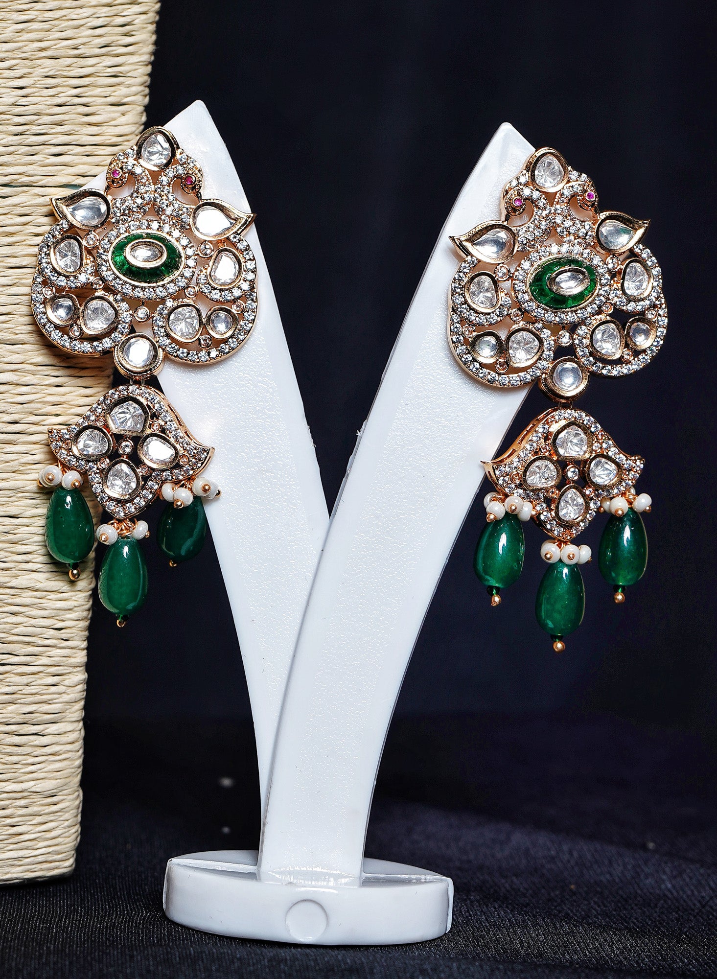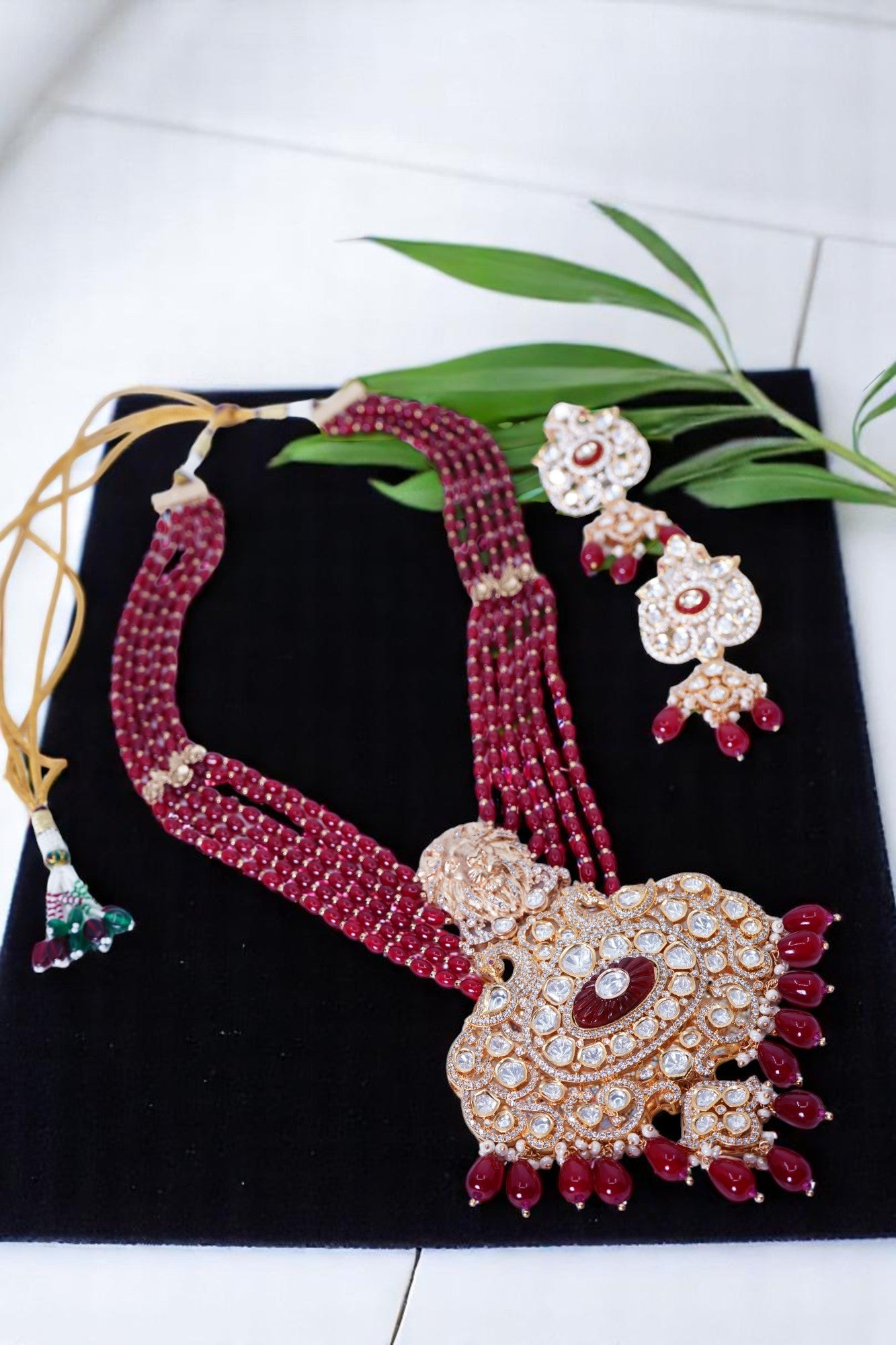Color – Emerald and Ruby- red coloured with polki kundan stones