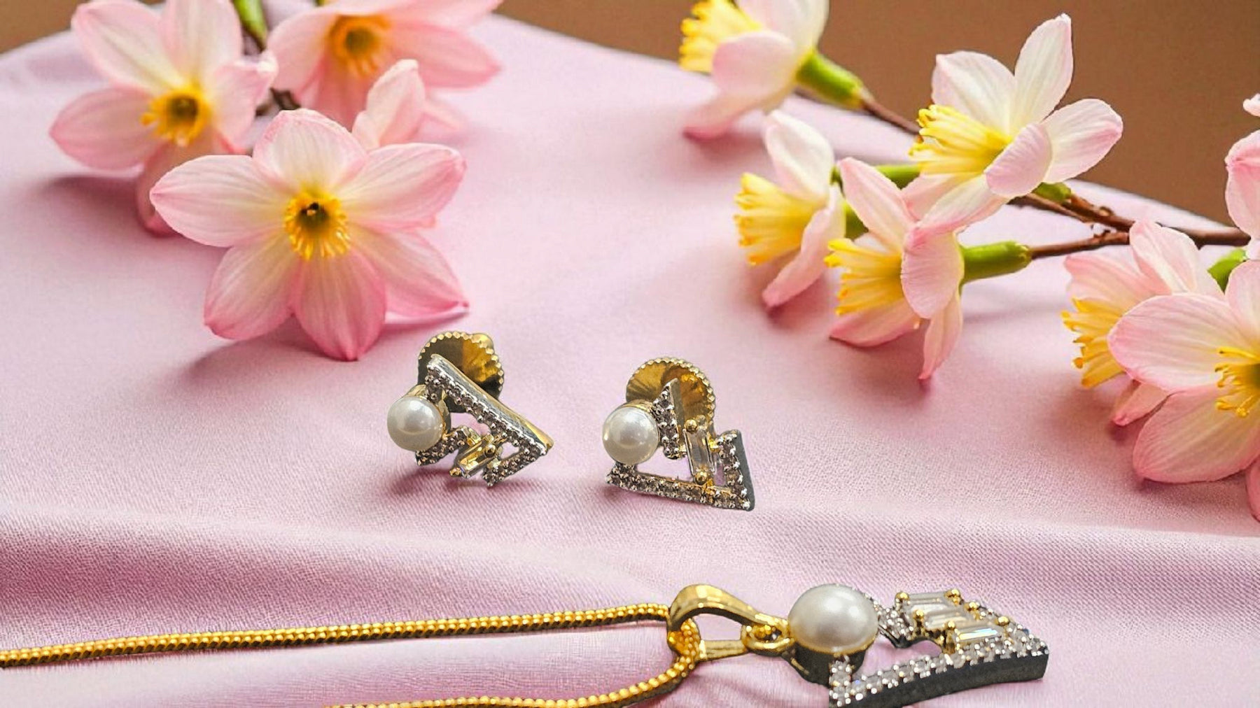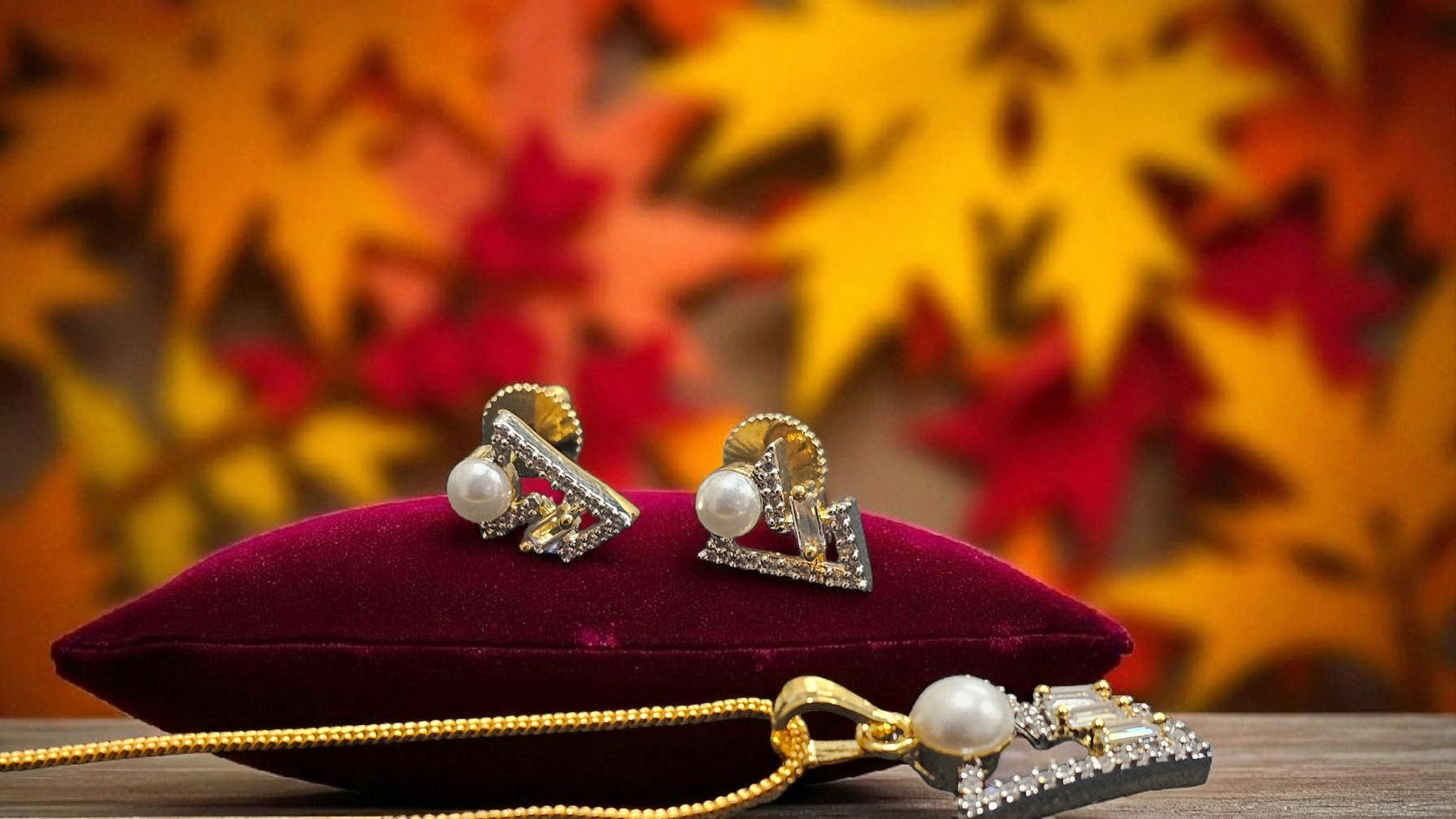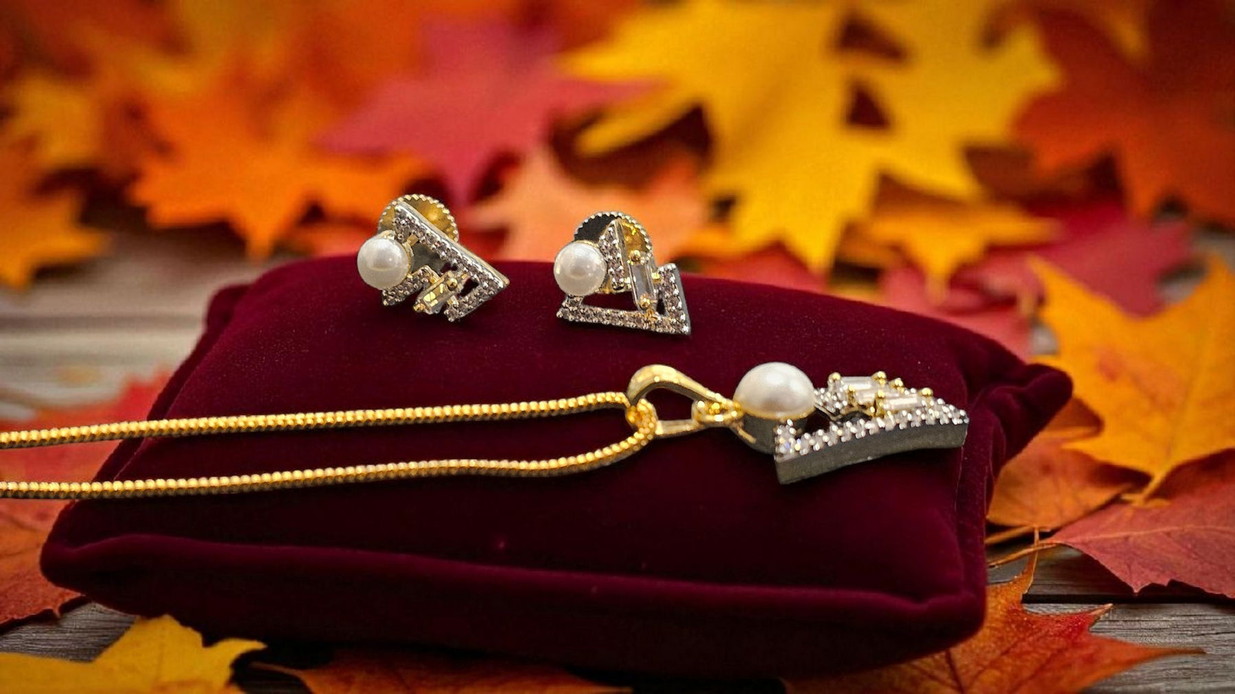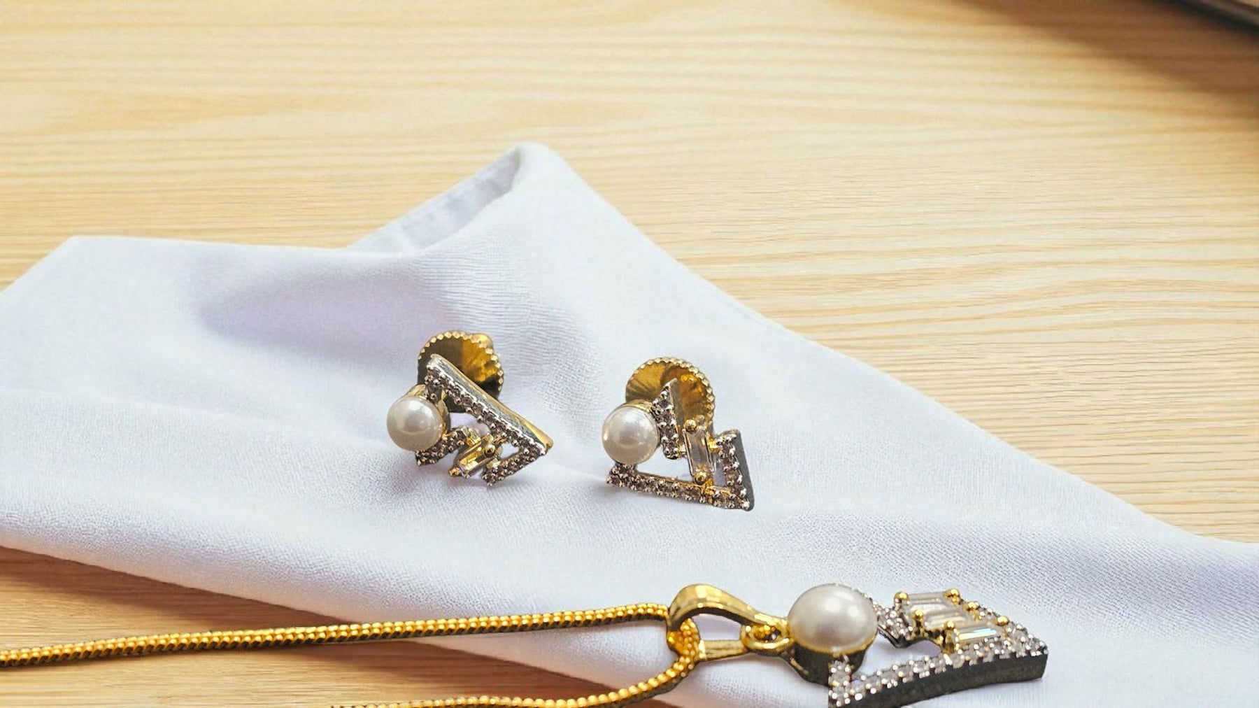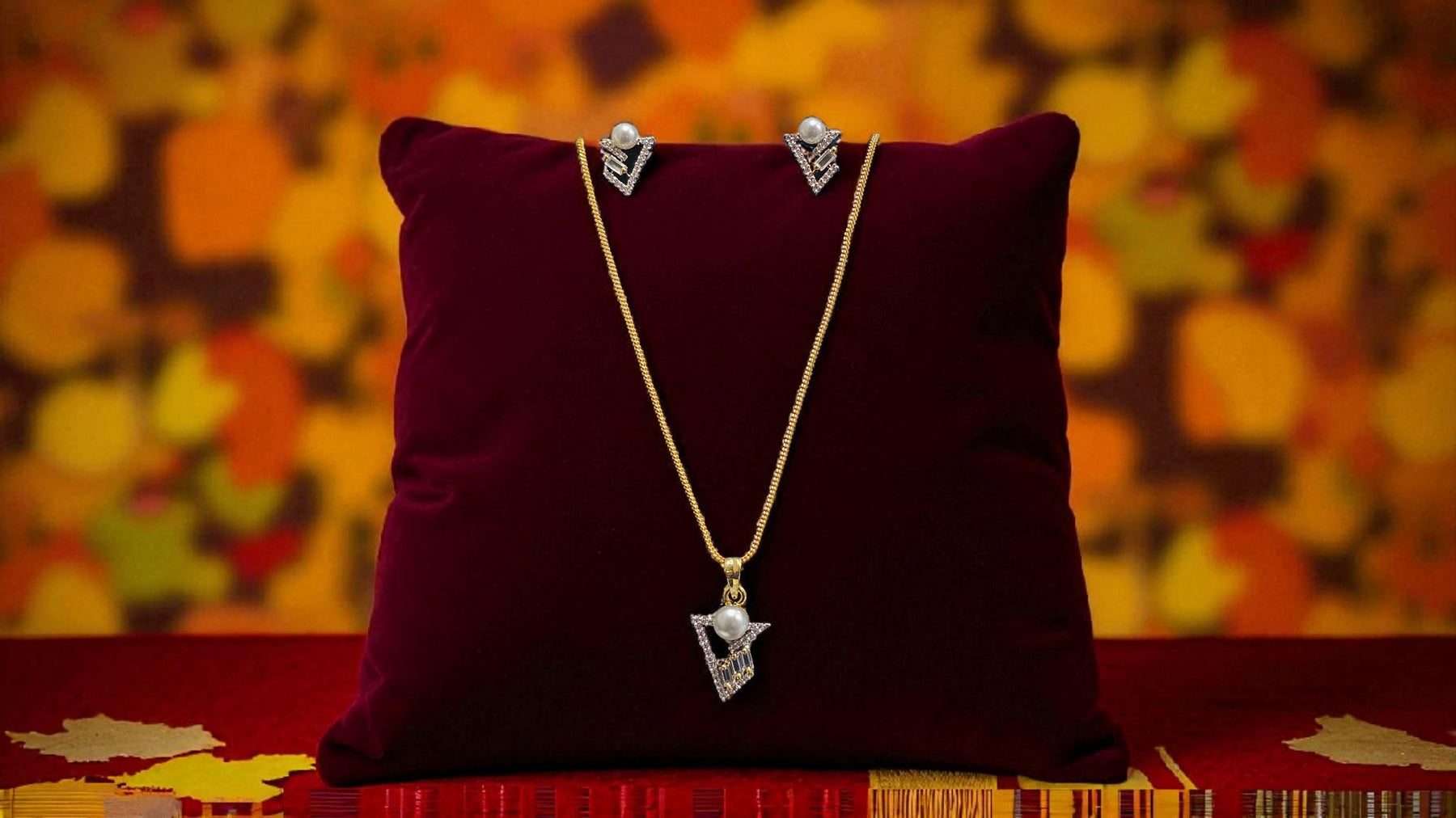 Box Contains – Unveil a breathtaking diamond look alike, pearl attached Pendant set, with golden plated chain along with a beautiful pair of same earrings