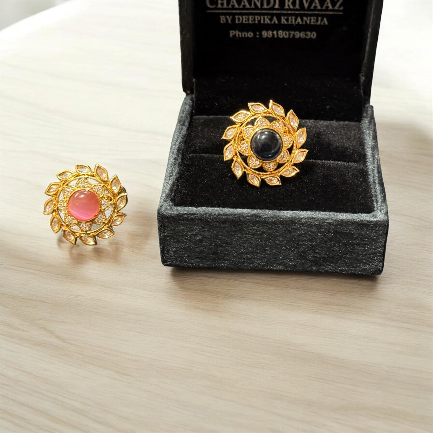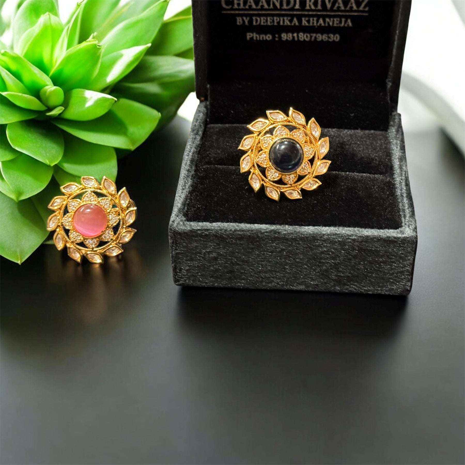 Box Contains – Beautiful Coloured Polki Designer Cocktail Rings