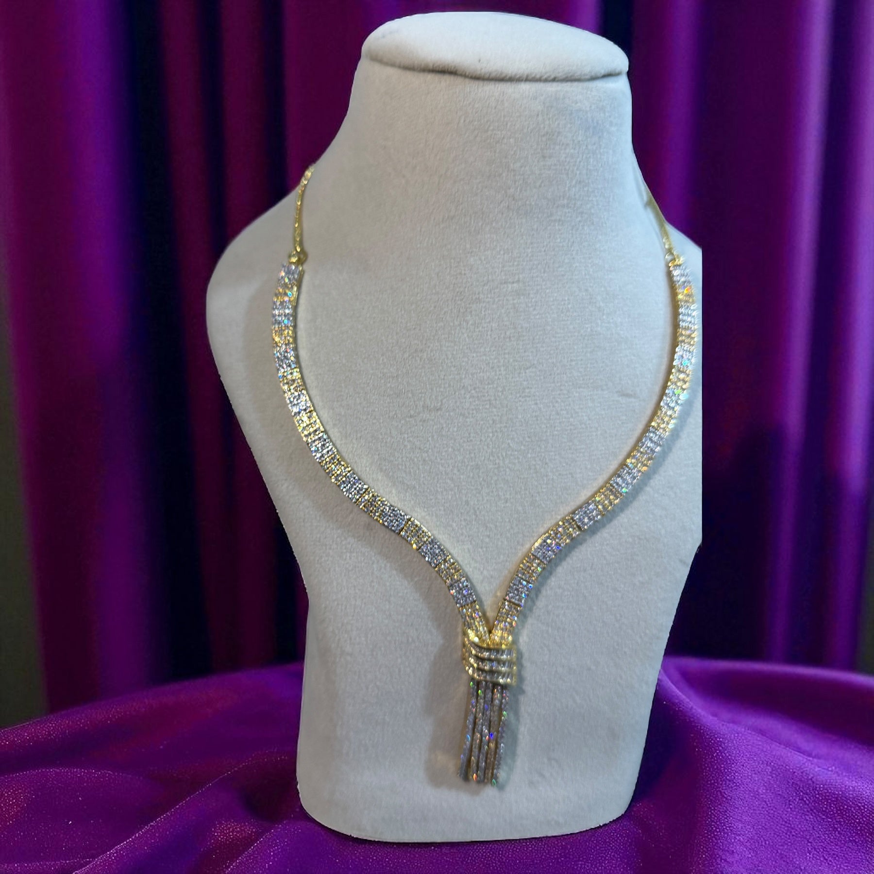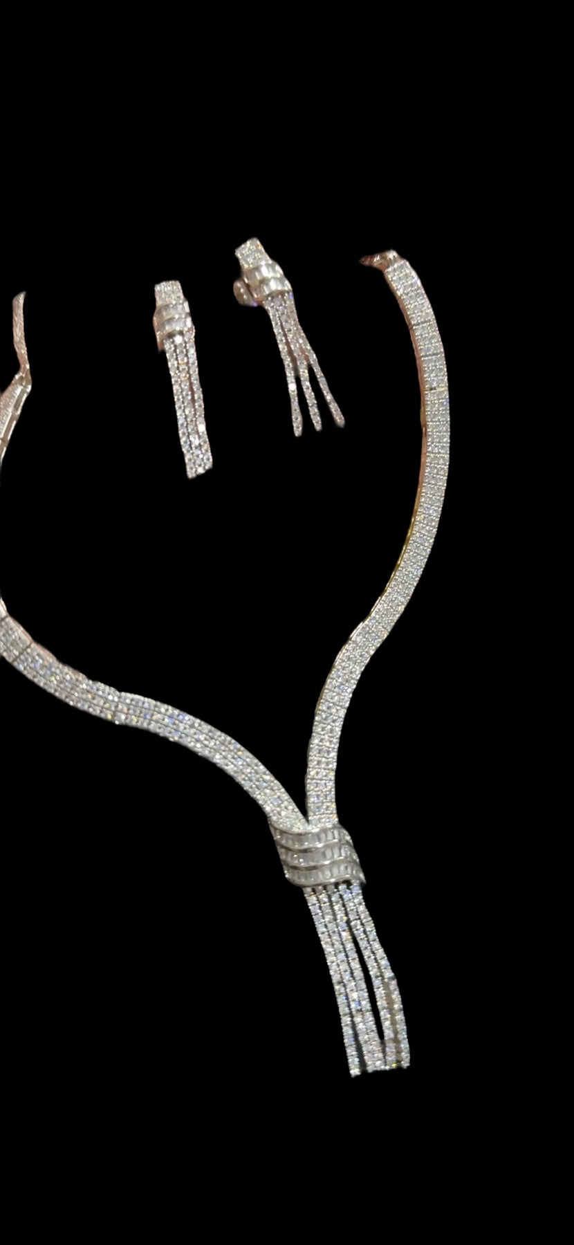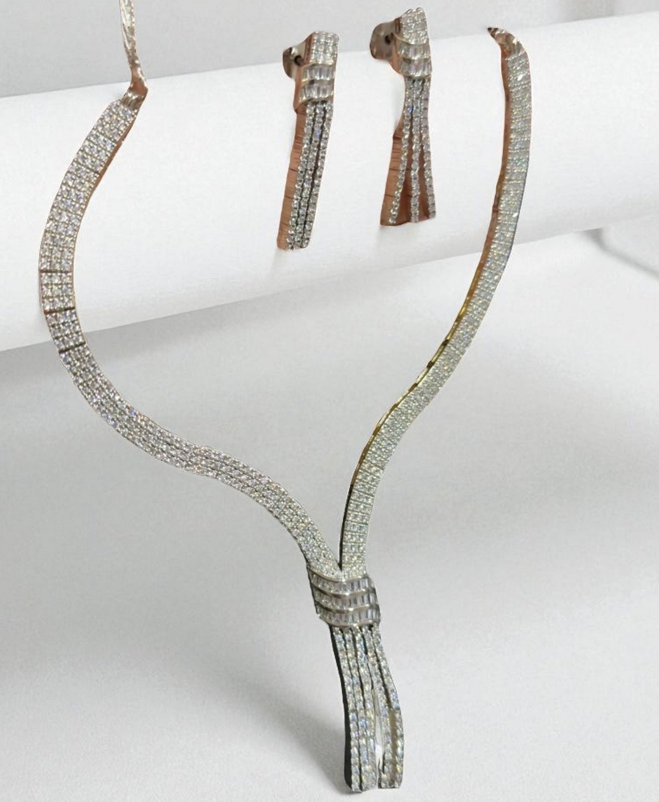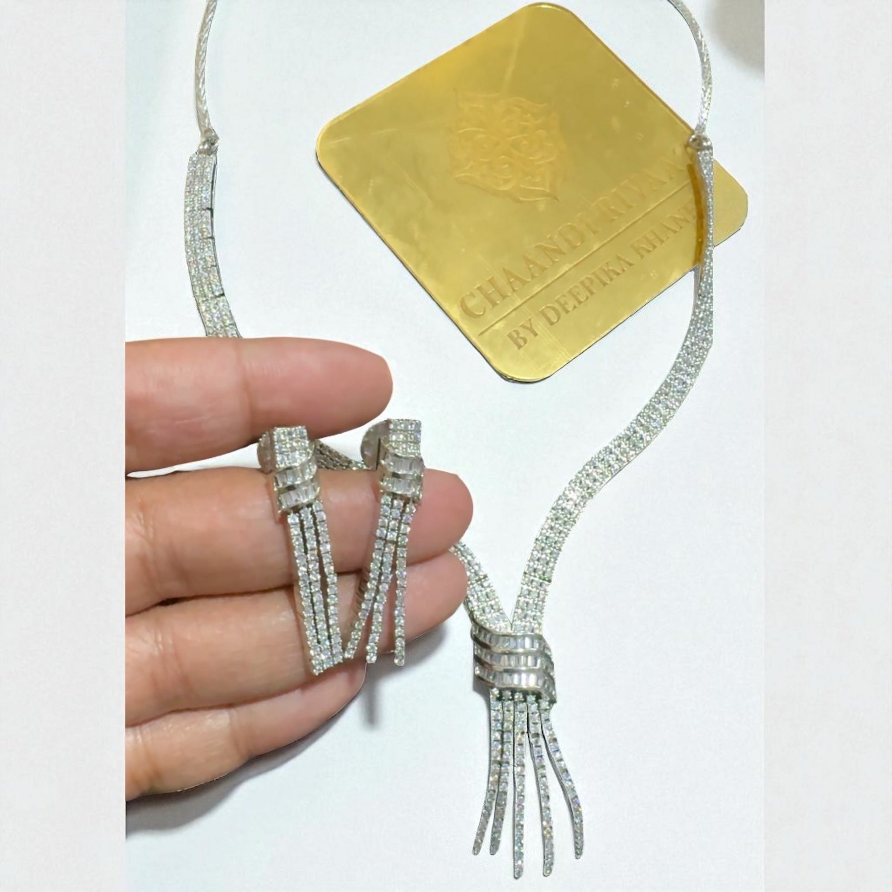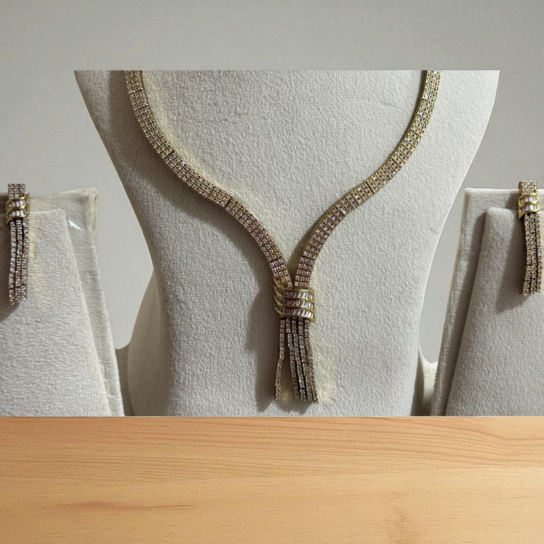 Box Contains – Unveil a breathtaking diamond look alike, V- Shaped elegant designer necklace set along with a beautiful pair of same earrings
