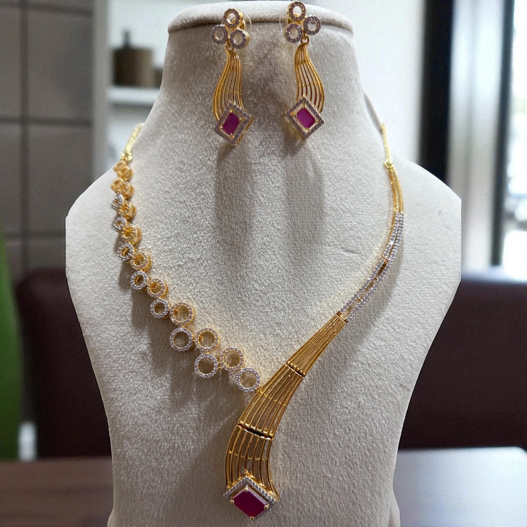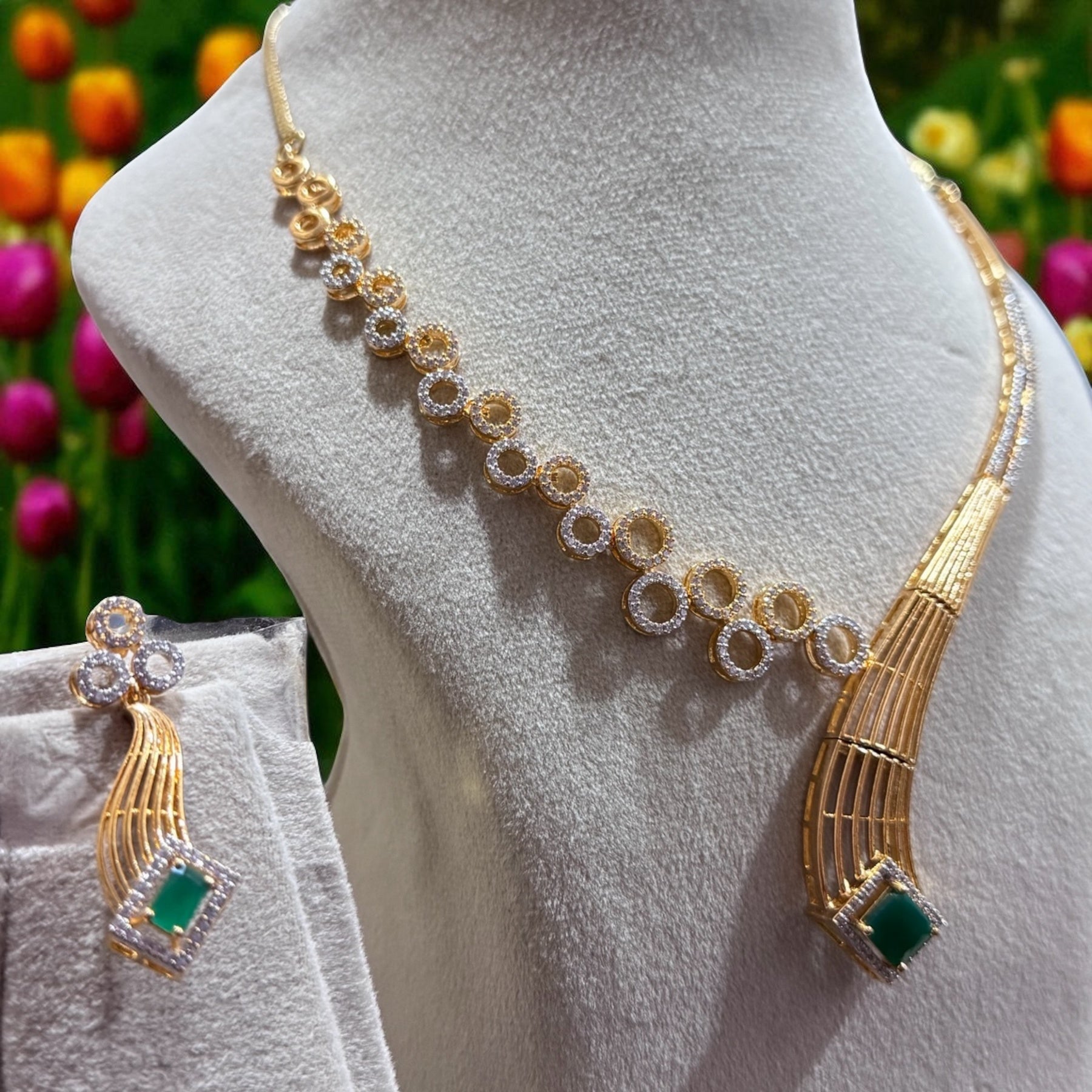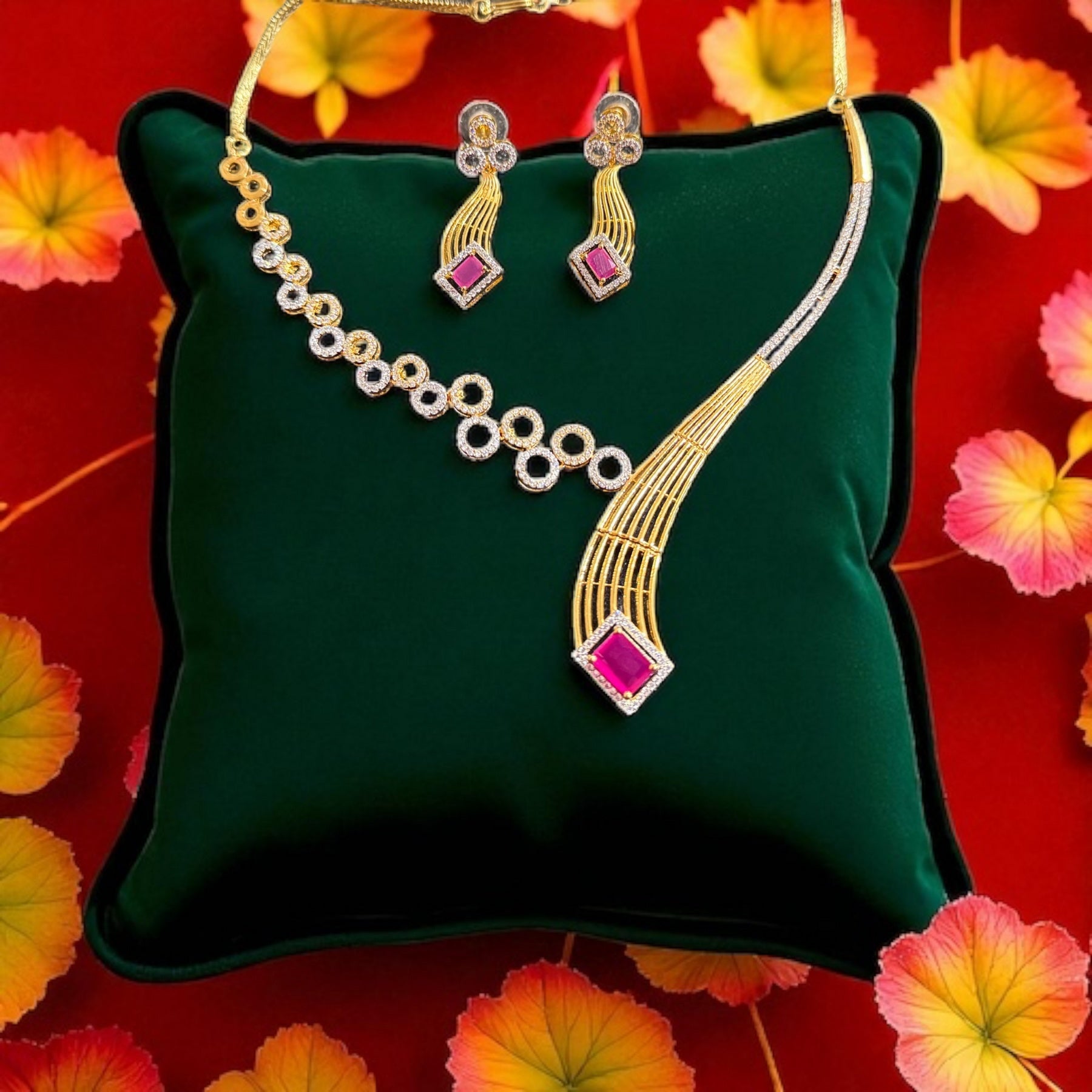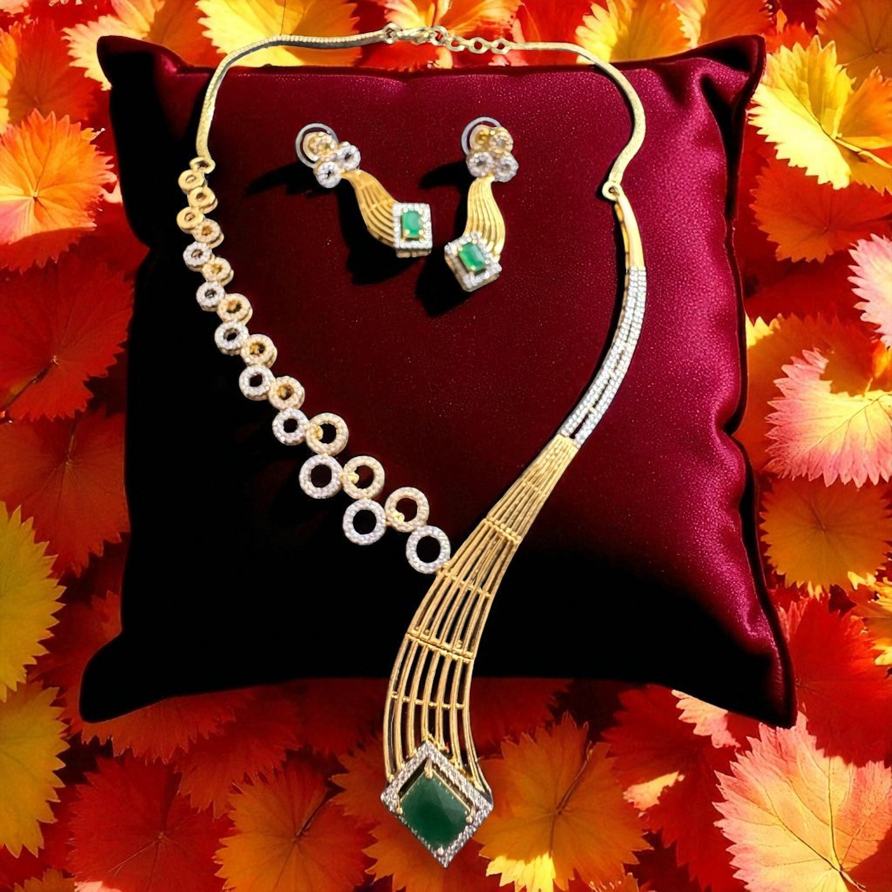Box Contains – Unveil a breathtaking diamond look alike, V- Shaped elegant designer necklace set along with a beautiful pair of same earrings